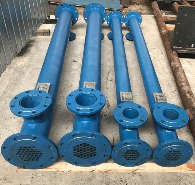 Трубная система состоит из теплообменных трубок, диаметром 16-25 мм. Их количество зависит от диаметра корпуса и количества ходов. Основной материал трубок - нержавеющая сталь. В подогревателях мазута типа ПМР применяются, как правило, ребристые трубки, которые имеют большую площадь нагрева мазута при таких же параметрах корпуса, поэтому считаются более эффективными.
